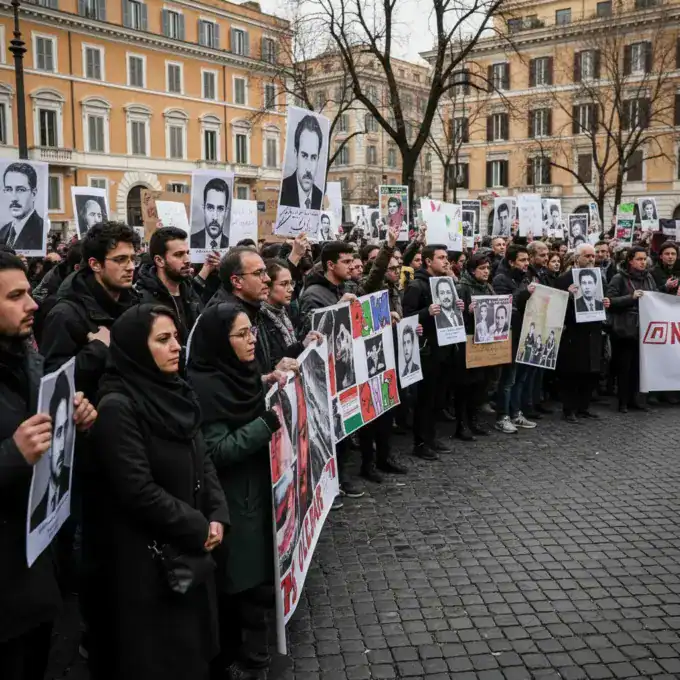 Iranian refugees, supported by human rights organizations like 'Nessuno tocchi Caino' and the Global Committee for the Rule of Law, demonstrated in Rome...