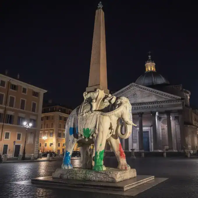 The historic elephant statue in Piazza della Minerva, near the Pantheon in Rome, has suffered another act of vandalism, with its left tusk...
