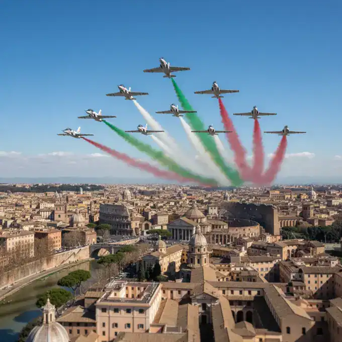 Military aircraft, identified as the Frecce Tricolori, were heard over Rome, sparking public curiosity. They are preparing for a flyover on March 17,...