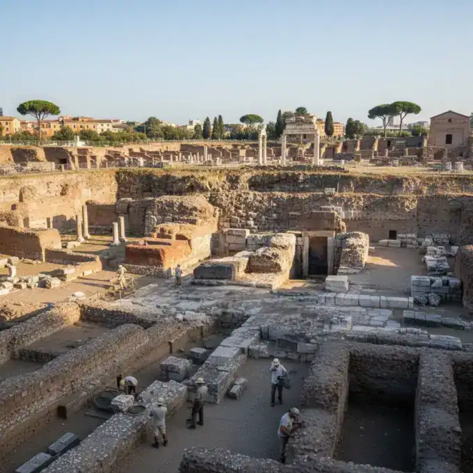 During preventive archaeological excavations in Pietralata, Rome, two monumental baths, a shrine likely dedicated to Hercules, and two Republican-era tombs have been unearthed,...